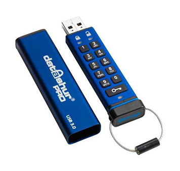 Batteri som tillåter användaren att ange en 7-15-siffrig PIN-kod via knappsatsen innan det ansluts till en USB-port. Alla data som överförs till enheten krypteras i realtid med AES-XTS 256-bitars kryptering på militär nivå.